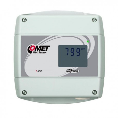 WebSensor with PoE - remote CO2 concentration with Ethernet interface. CO2, carbon dioxide Web sensor with Power over Ethernet feature with remote alarm.