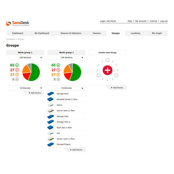 The SensDesk IoT portal provides quick views of current values on a mobile phone, graphs of measured values up to 3 months back and alarm settings via e-mail or SMS (with a HWg-SMS-GW3 gateway). HWg-PDMS software collects all measured data, converts it into Excel reports and helps document environmental values for regulatory bodies, for example in pharmacies and the food industry.