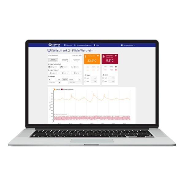 The values are displayed as a clear diagram that can be set to specific time intervals (day, week or month). The data can be exported graphically as PDF or as CSV file in text format. The export files can be sent by e-mail.