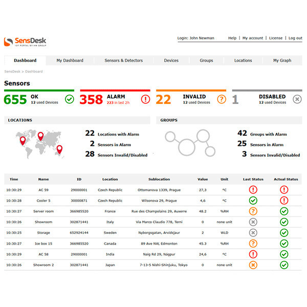 | Configuração e gestão | Servidor web integrado, SensDesk (Web/Mobile), HWg-PDMS, HWg-Trigger |