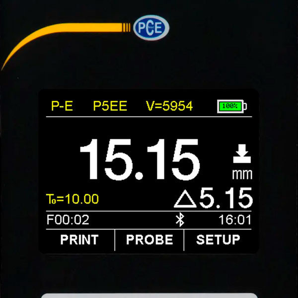 O ecrã TFT a cores facilita a leitura dos valores em ambientes de trabalho exigentes. A memória interna permite guardar medições de diferentes pontos, enquanto o modo de duplo eco permite medir através de revestimentos sem incluir a espessura do revestimento no resultado final. Trata-se de um equipamento ideal para inspeção de tubagens, depósitos, componentes metálicos, peças técnicas, controlo de desgaste e deteção de falhas.