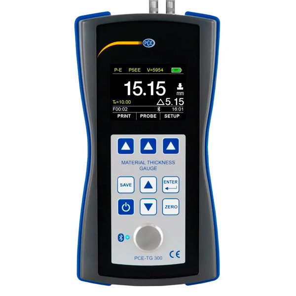 O PCE-TG 300-NO7 é um medidor de espessura ultrassónico profissional, desenvolvido para medições rápidas, precisas e não destrutivas em materiais homogéneos. Graças à sua ampla gama de medição, aos modos pulso-eco e duplo eco, e à possibilidade de ligação Bluetooth e USB, é uma solução versátil para manutenção industrial, controlo de qualidade, inspeção técnica e avaliação de corrosão.