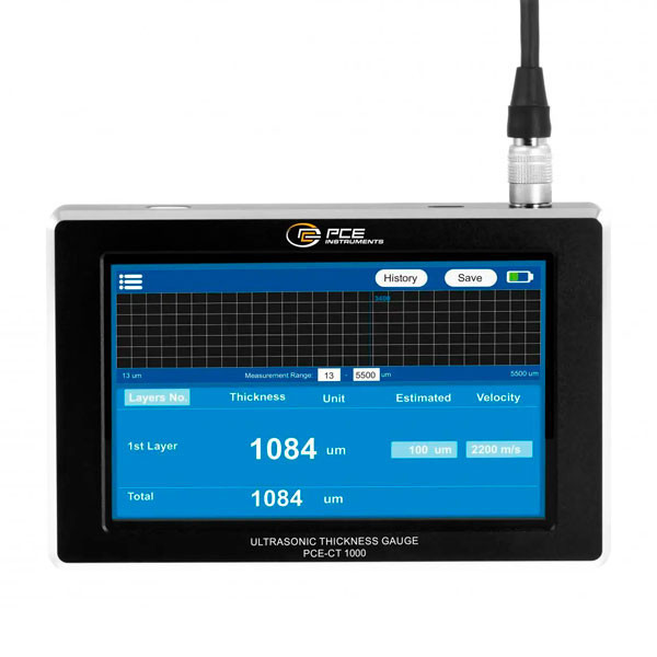 O PCE-CT 1000 serve para medir com precisão a espessura de materiais, revestimentos e sistemas multicamada através de tecnologia ultrassónica, sendo ideal para inspeção, controlo de qualidade e manutenção industrial.