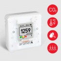O Aranet4 é um sensor sem fios autónomo e inovador alimentado por uma bateria. Monitoriza o dióxido de carbono (CO₂), temperatura, humidade relativa e a pressão atmosférica em ambiente interior. Indicado para monitorizar a qualidade do do ar em escolas, escritórios ou em outro ambientes. O dispositivo é portátil, simples de instalar, fácil de operar e permite que o utilizador tenha conhecimento quando os níveis monitorados se tornam prejudiciais para a saúde.
