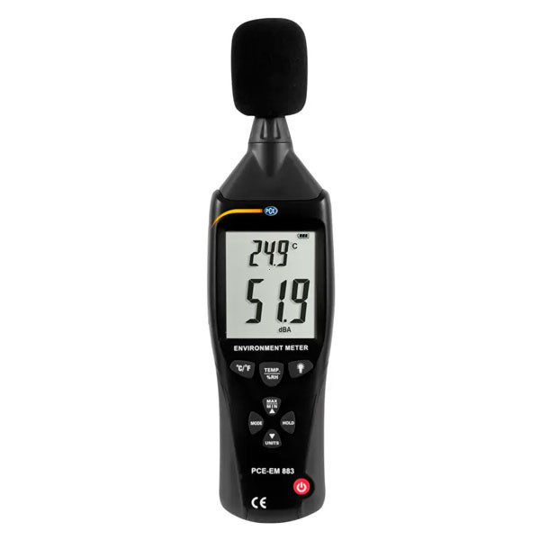 O Medidor Ambiental PCE-EM 883 é um equipamento profissional 5 em 1 que integra as funções de medição de som, intensidade luminosa, velocidade do vento, temperatura e humidade. Com função HOLD, registo de máximos e mínimos e visor LCD retroiluminado, oferece versatilidade e precisão em diferentes ambientes.