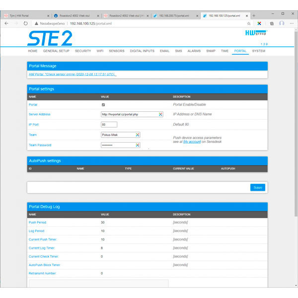 Portal & App | HWg-cloud (gratuito, opcional) / SensDesk; App HWg Monitor |