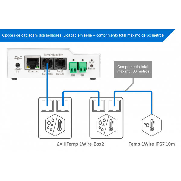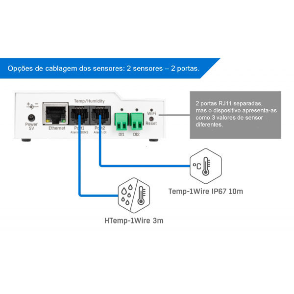 Portas de sensores | 2× RJ11 (1W-UNI); até 5 valores de sensores (total) |